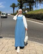 دريس جينز حريمي كاجوال بخامة جينز خفيف، تصميم شبابي وموضة 2025، متوفر بألوان زي الأزرق الغامق. مناسب كلبس خروج، الجامعة أو الشغل. تسوقي أونلاين في مصر واختاري ستايلك